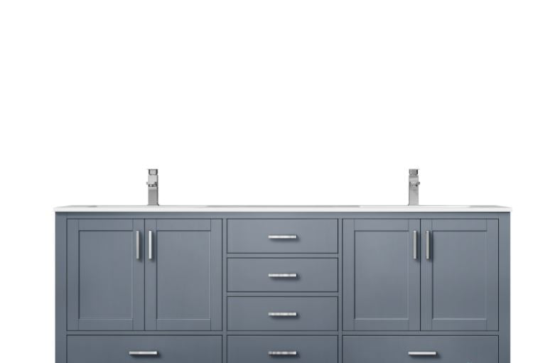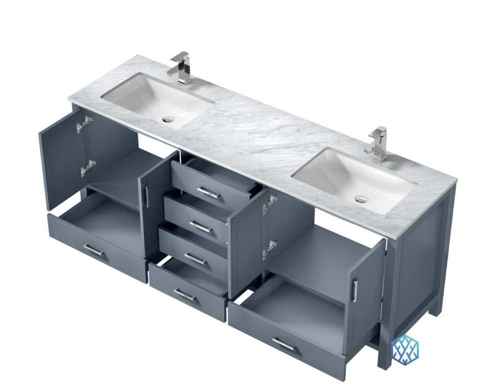 Lexora Jacques 80" Dark Grey Double Vanity, White Carrara Marble Top, White Square Sinks and no Mirror LJ342280DBDS000