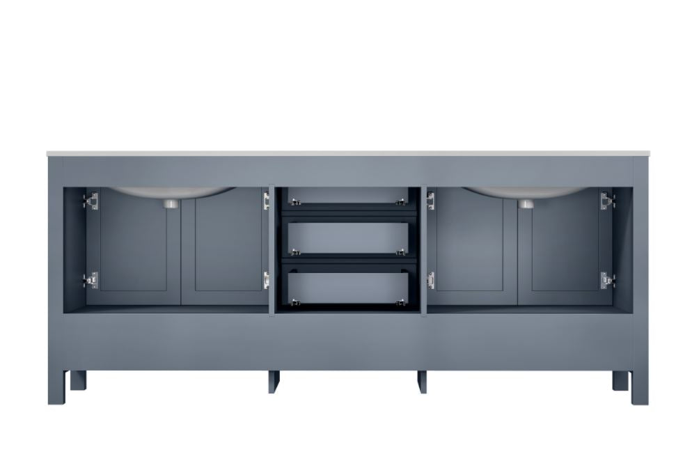 The Jacques vanity in dark grey from Lexora provides a beautiful, contemporary style to any bathroom. With sleek, clean lines and a cool, neutral finish, this vanity’s beauty is only matched by its seamless functionality. The cabinet doors and drawers feature soft-close hinges and slides to increase safety and ensure you never have to hear a slamming cabinet again.