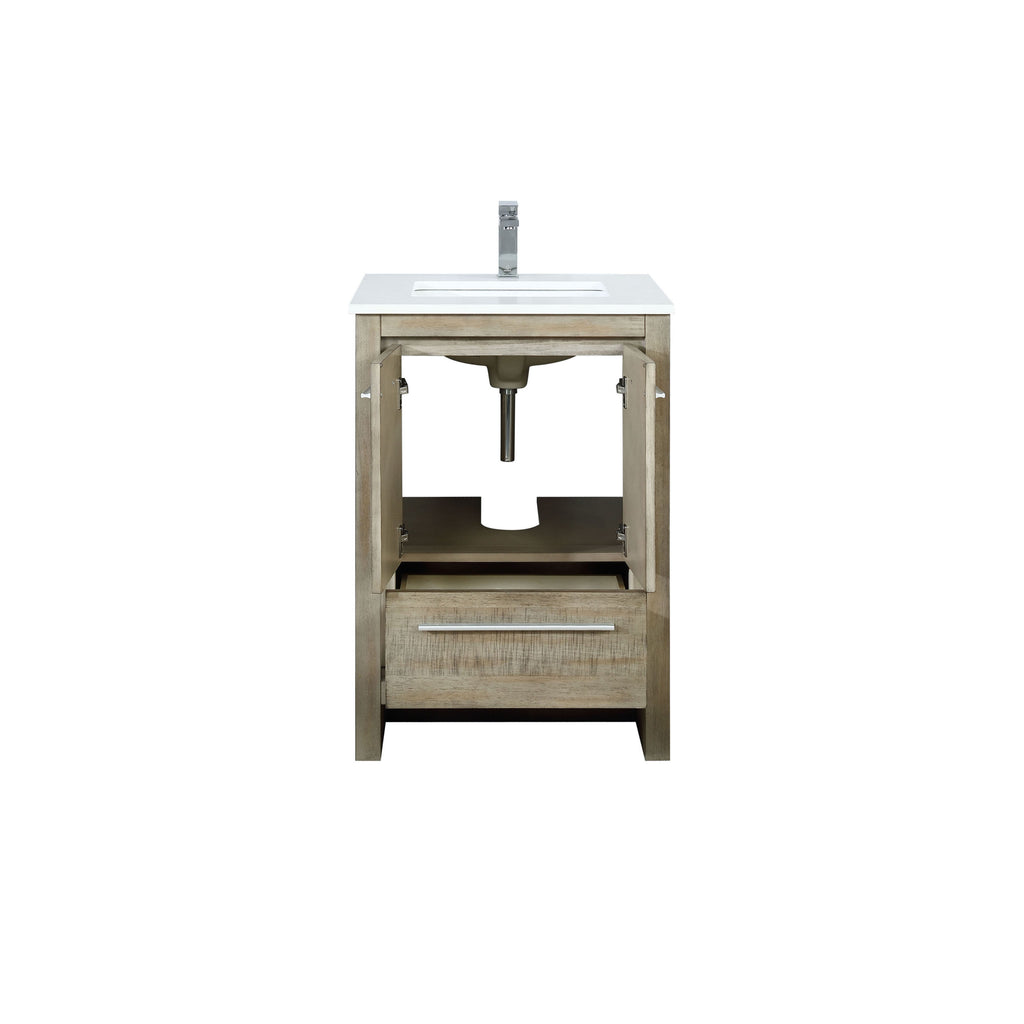 Lexora Lafarre 24" Rustic Acacia Bathroom Vanity, White Quartz Top, White Square Sink, and Balzani Gun Metal Faucet Set LLF24SKSOS000FGM