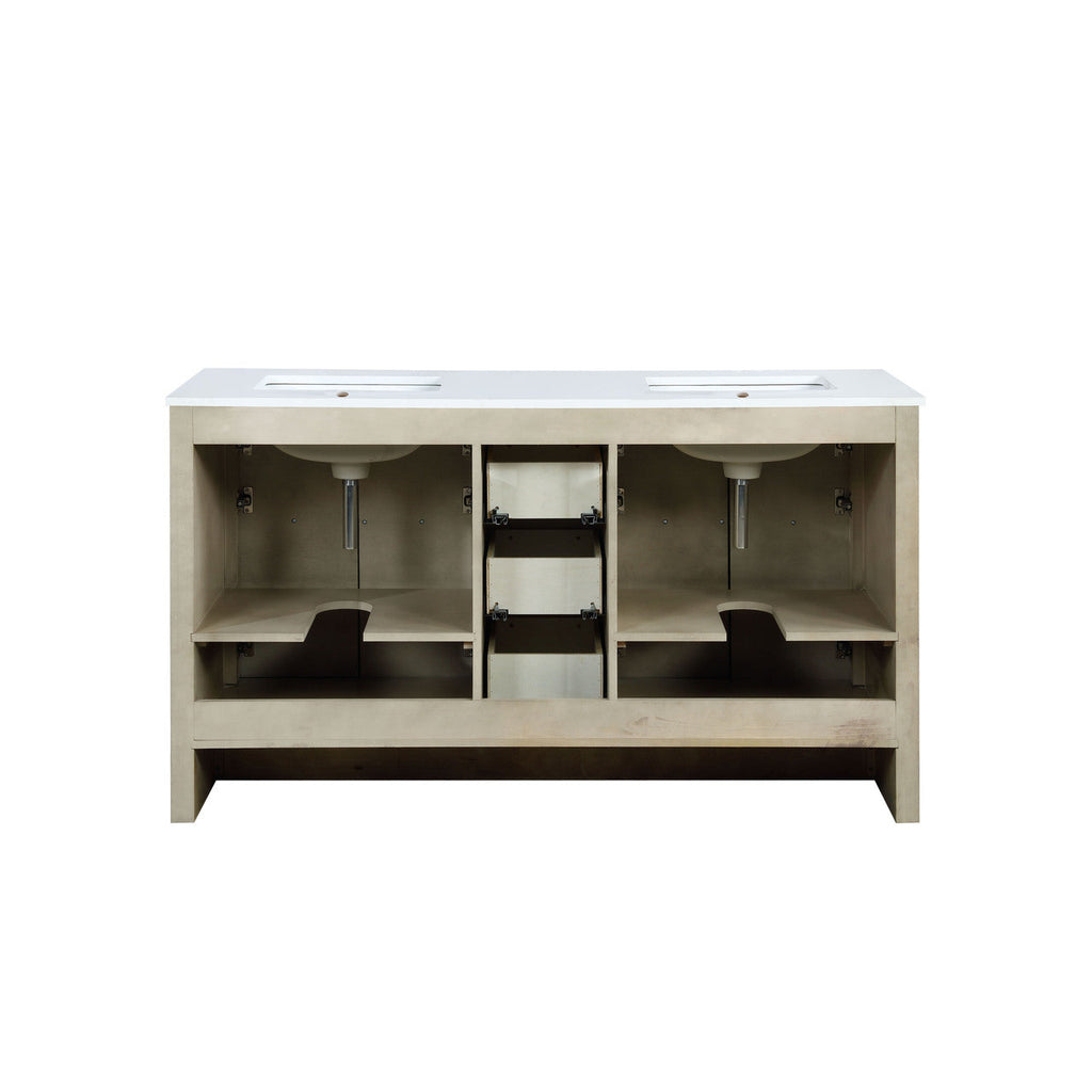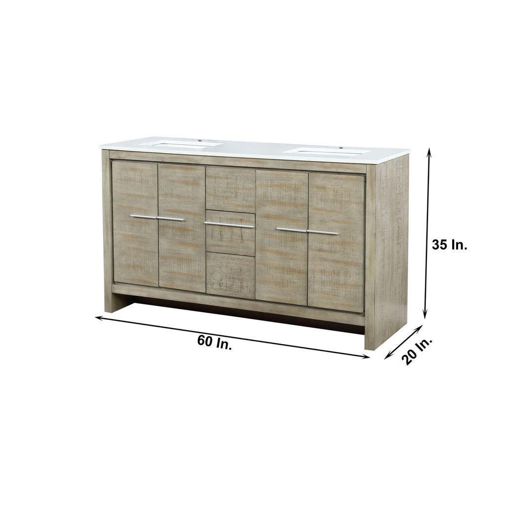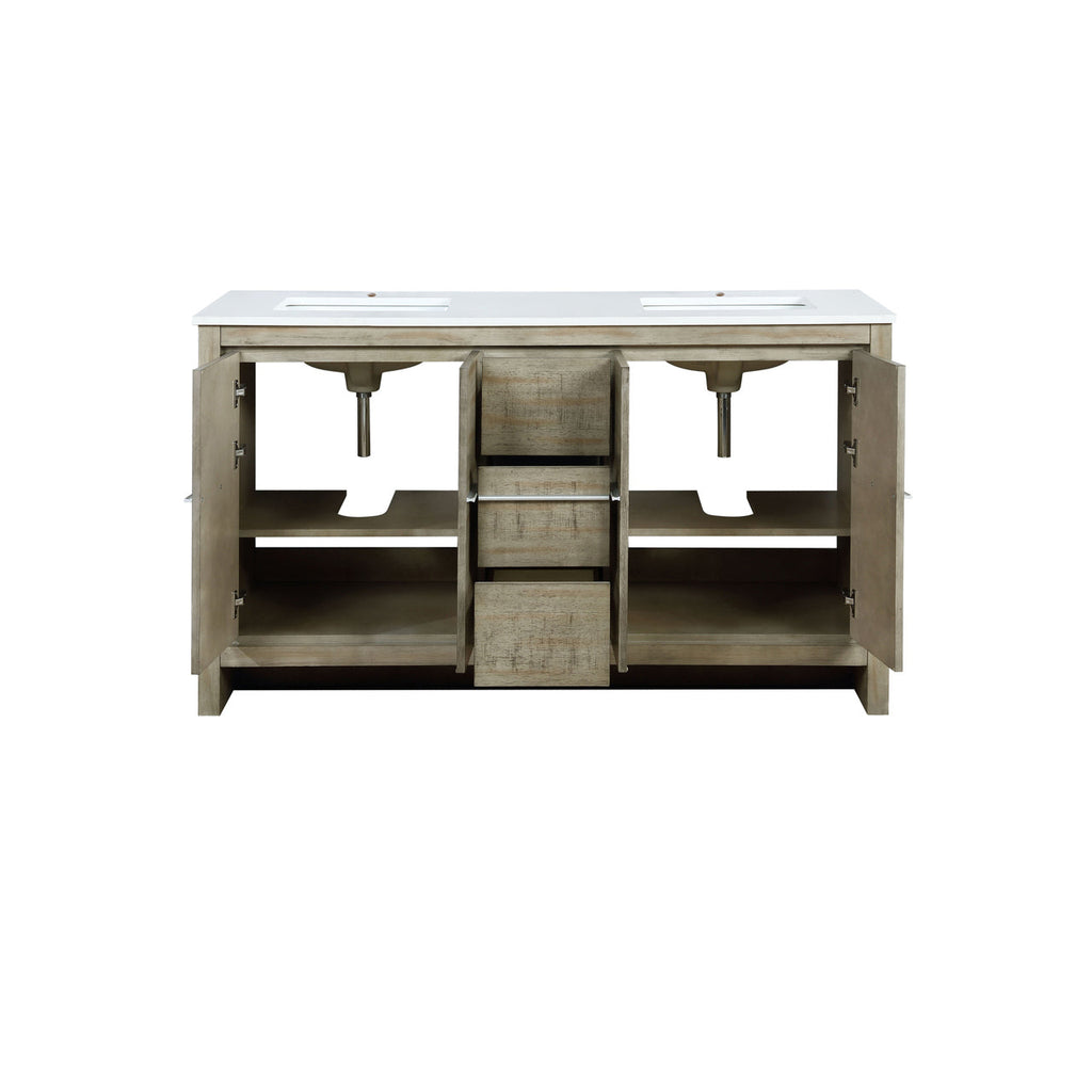 Lexora Lafarre 60" Rustic Acacia Double Bathroom Vanity, White Quartz Top, and White Square Sinks LLF60DKSOD000