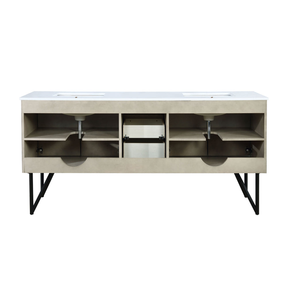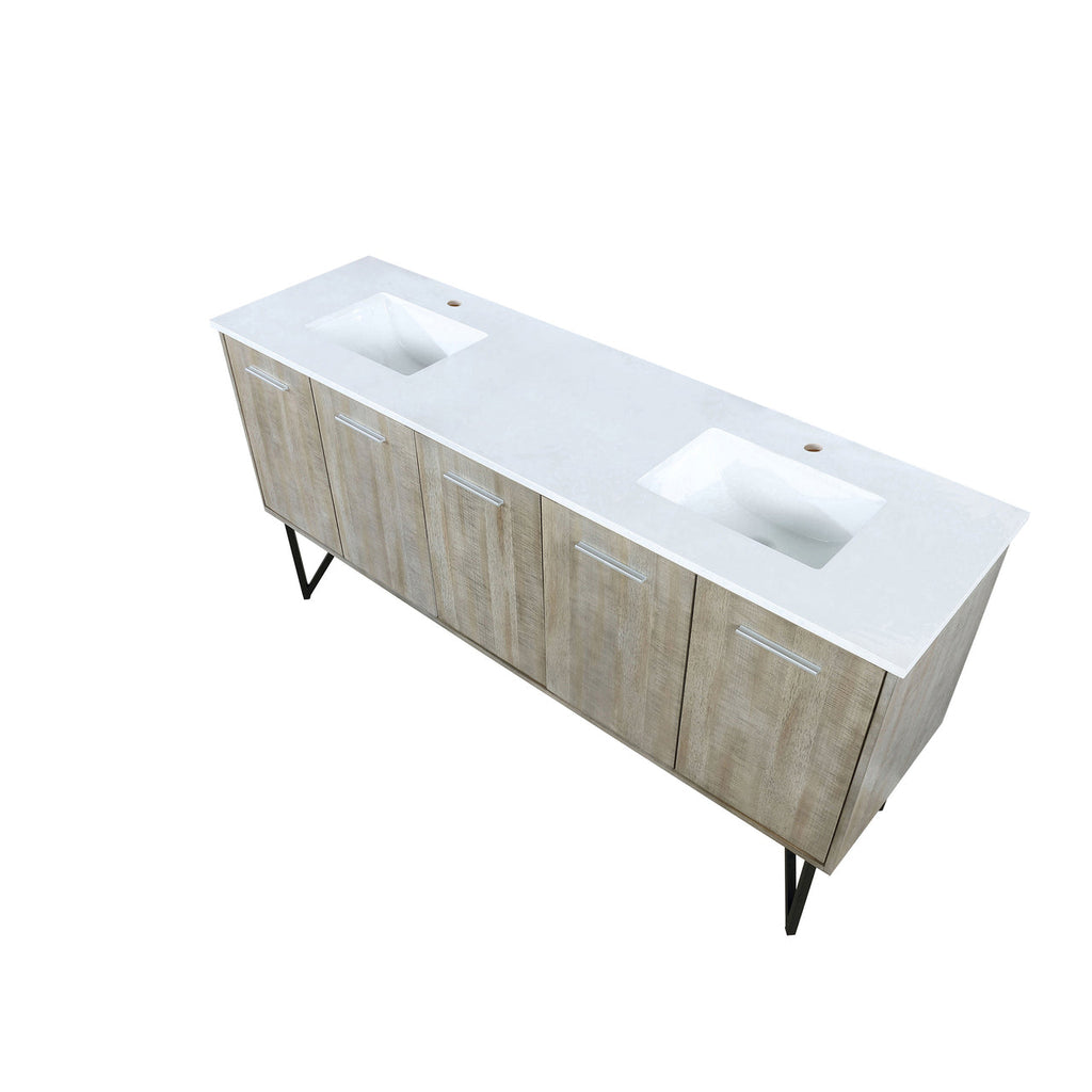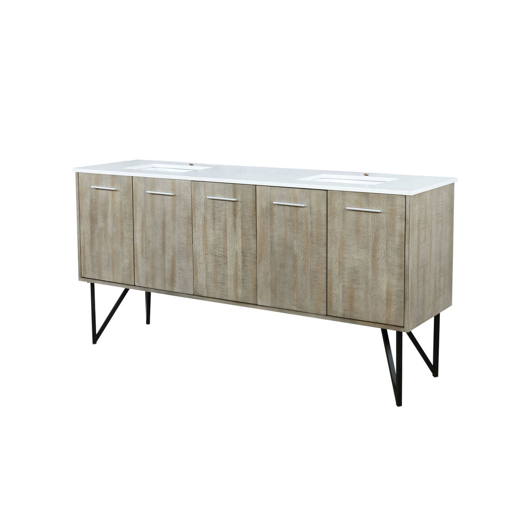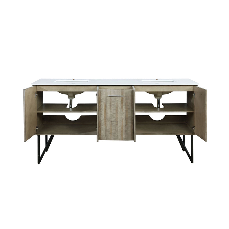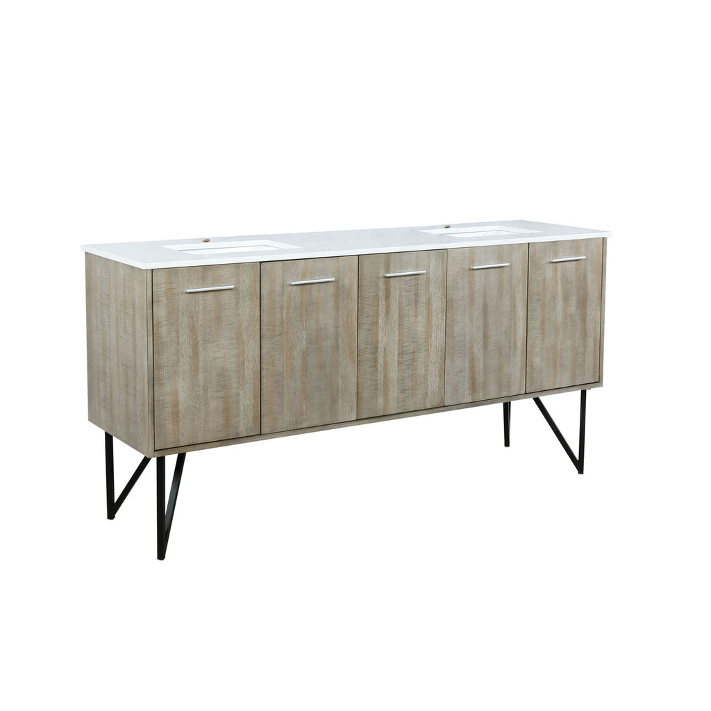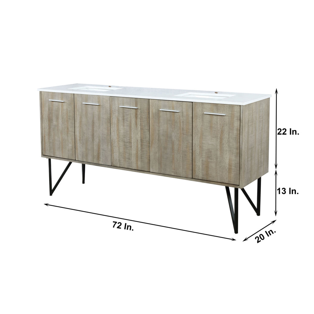 Lexora Lancy 72" Rustic Acacia Double Bathroom Vanity, White Quartz Top, and White Square Sinks LLC72DKSOS000