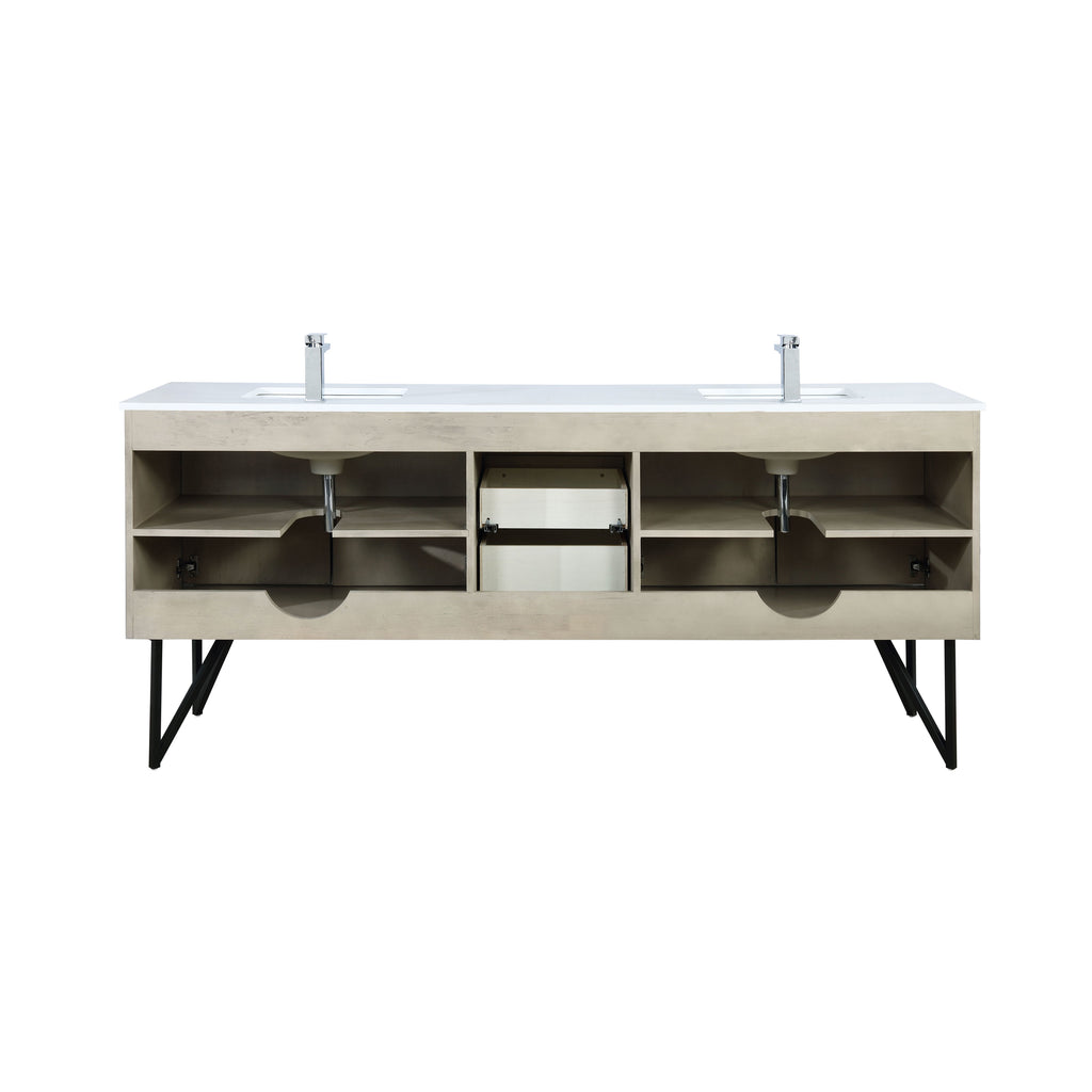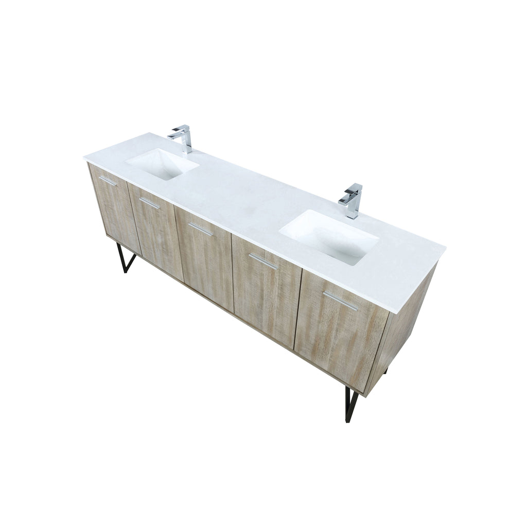 Lexora Lancy 80" Rustic Acacia Double Bathroom Vanity, White Quartz Top, White Square Sinks, and Labaro Rose Gold Faucet Set LLC80DKSOS000FRG