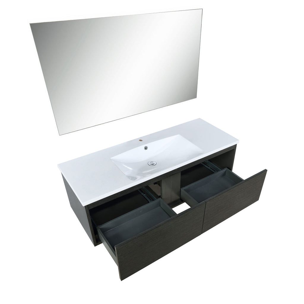 Lexora Sant 48" Iron Charcoal Bathroom Vanity, Acrylic Composite Top with Integrated Sink, and 43" Frameless Mirror LS48SRAISM43