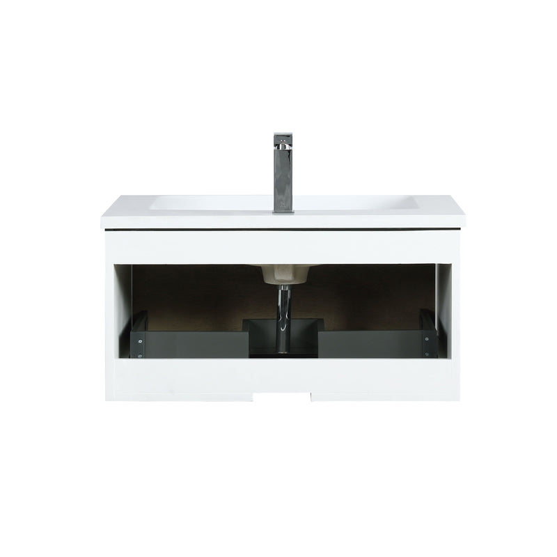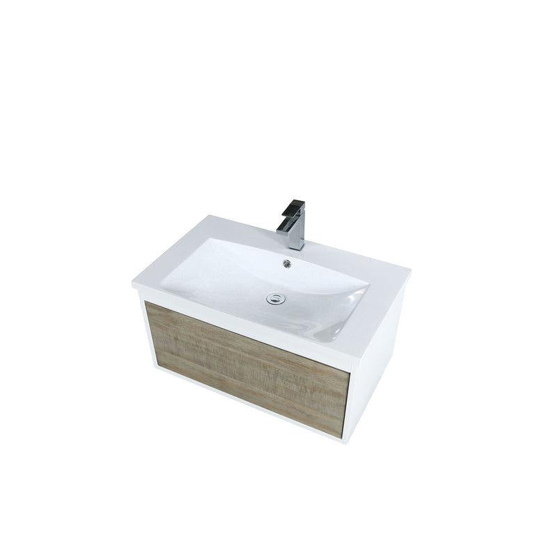 Lexora Scopi 30" Rustic Acacia Bathroom Vanity, Acrylic Composite Top with Integrated Sink, and Labaro Rose Gold Faucet Set LSC30SRAOS000FRG