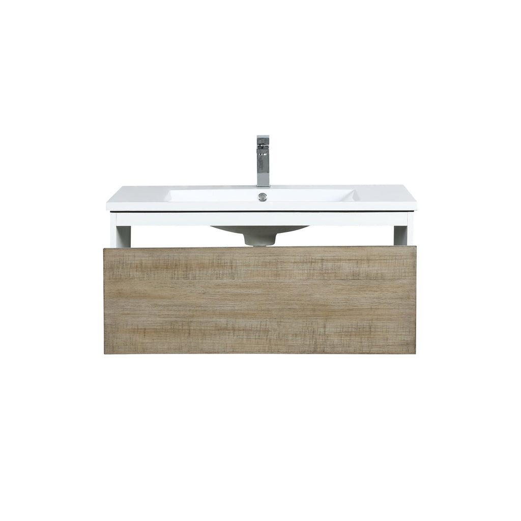 Lexora Scopi 36" Rustic Acacia Bathroom Vanity, Acrylic Composite Top with Integrated Sink, and Labaro Brushed Nickel Faucet Set LSC36SRAOS000FBN