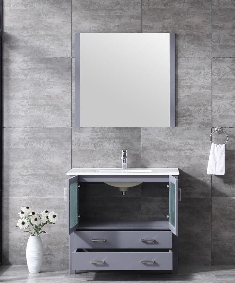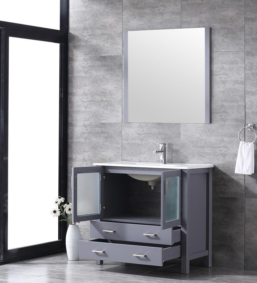 Lexora Volez 36" Dark Grey Single Vanity, Integrated Top, White Integrated Square Sink and 34" Mirror LV341836SBESM34