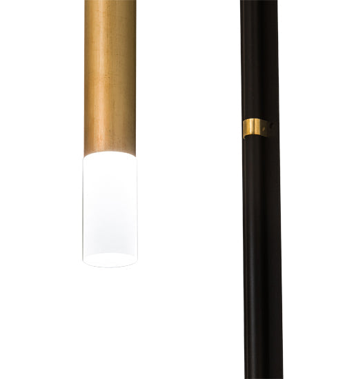A uniquely suspended cylindrical fixture in a Brushed Brass finish featuring a Contrail Mist Idalight diffuser, this unique, elongated wall sconce includes a Flat Black wall plate with a fancy Red wire.