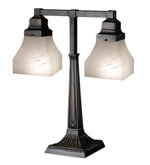 Meyda 20"H Bungalow White Alabaster Swirl 2 Arm Desk Lamp 27625