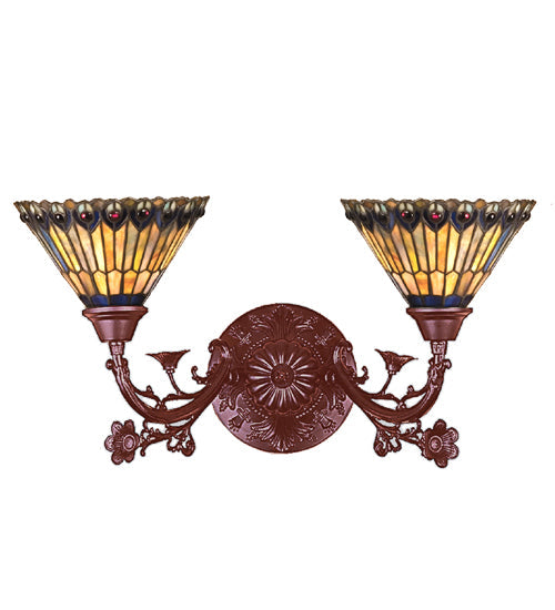 Meyda 21"W Tiffany Jeweled Peacock 2 LT Wall Sconce 31971