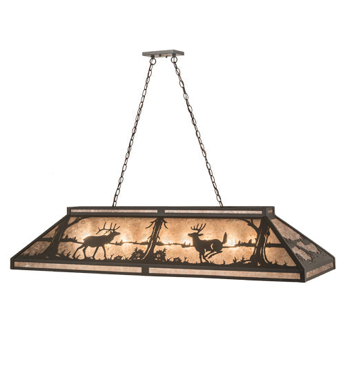 Meyda 61" Long Elk & Deer at Lake Oblong Pendant '184266