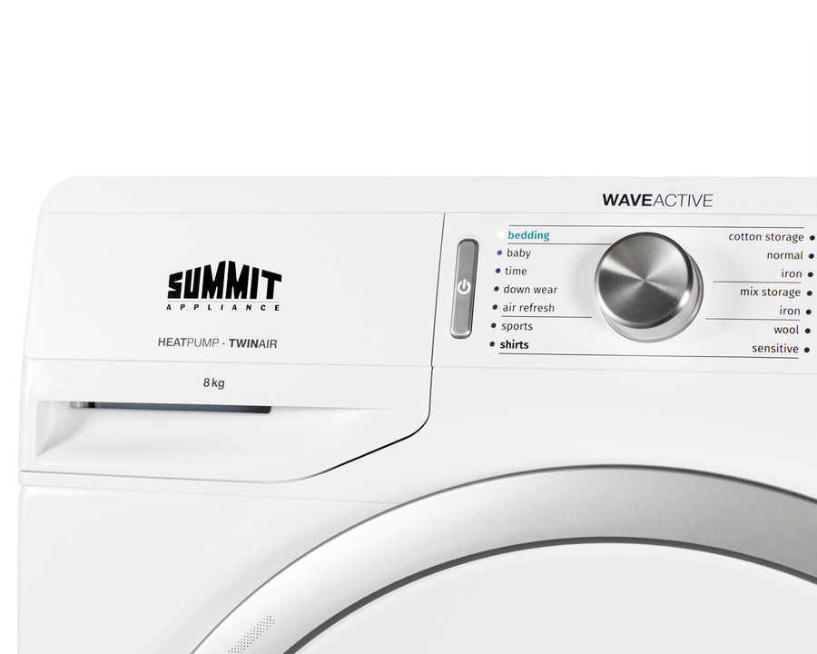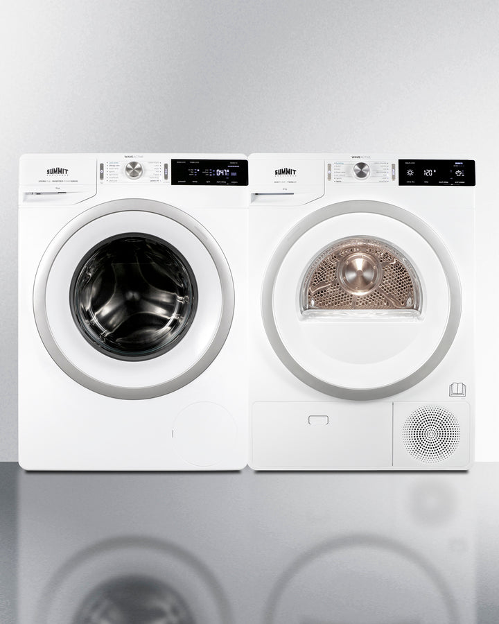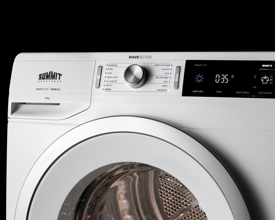Designed and manufactured in Europe, Summit's ENERGY STAR certified SLD242W is a 24" wide fully featured front-loading heat pump dryer with user-friendly features for optimal convenience.