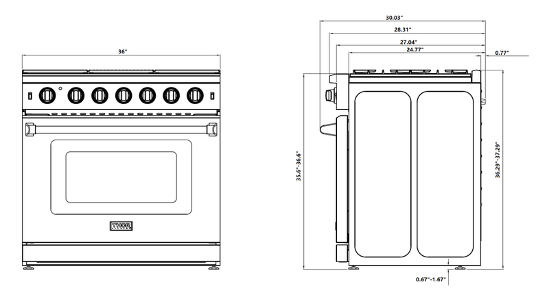 1. Thor Kitchen 36" Gas Range in Stainless Steel (LRG3601U)
