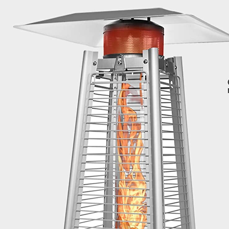 This tower propane patio heater, which is ideal for warming your patio, deck, or pool area will bring you warmth and coziness as the winter approaches. All accessories required for use in this open fire pyramid heater for outdoor are provided in the box, simply supply your own standard 20lb propane tank and fuel.