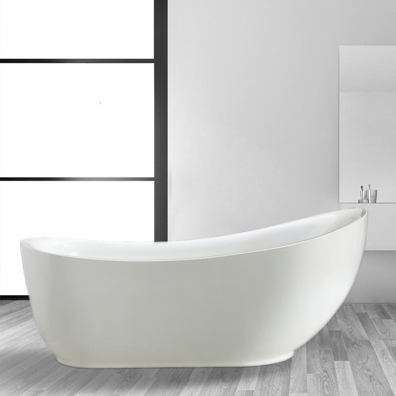 Classic style and modern sensibility merge in this stunning freestanding bathtub. The unexpected lack of feet provides a streamlined look that beautifully complements a contemporary décor. Featuring a durable, snow-white finish, the acrylic tub is designed to provide supreme comfort during long, relaxing soaks.