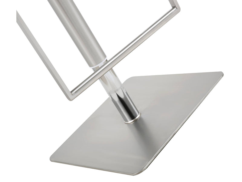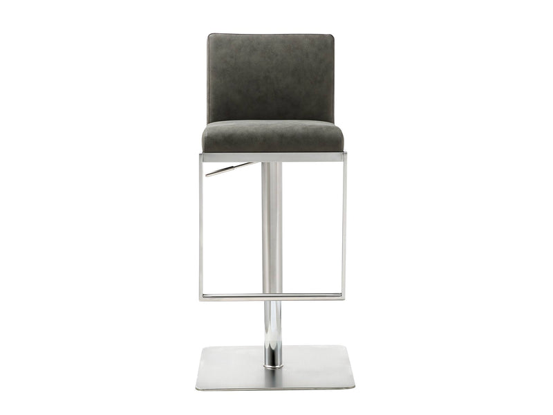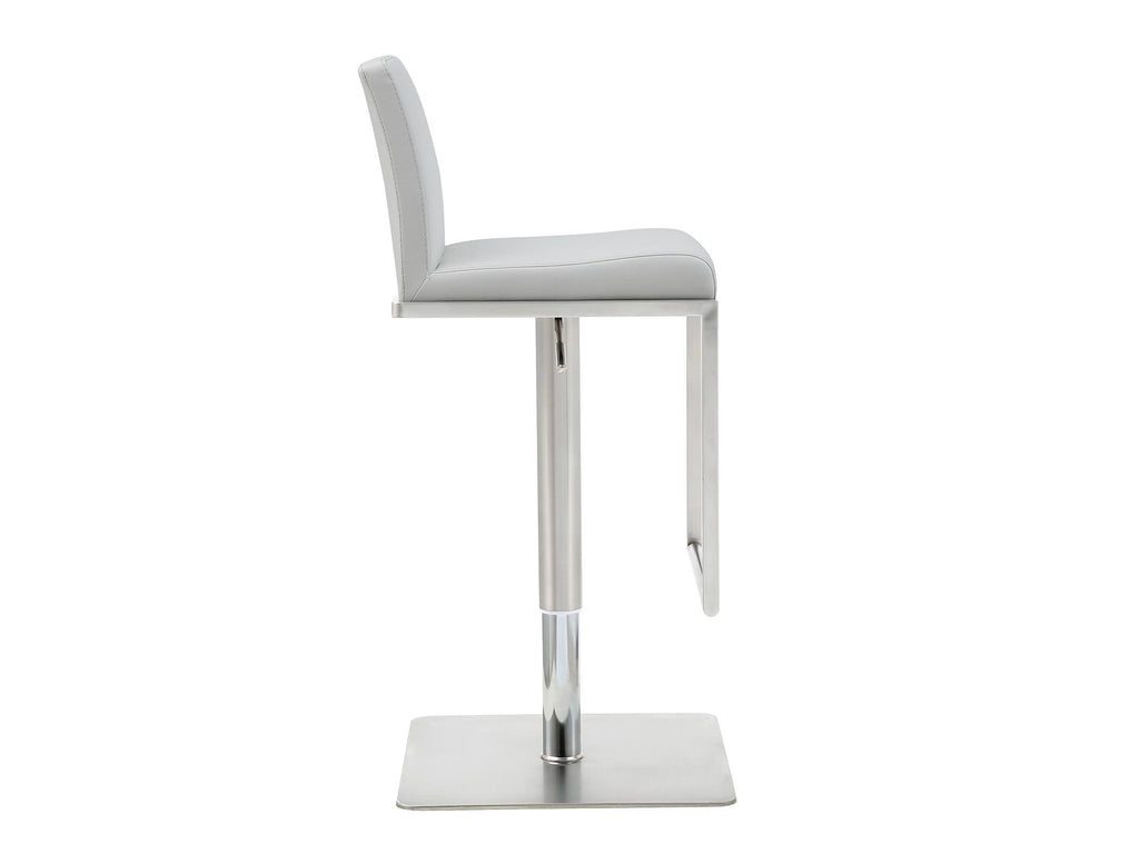 Clay Barstool, Available in White Faux Leather or in Grey Faux Leather, Adjustable Height with Gas Lift, Square Footrest and Silver Stainless-Steel Base.