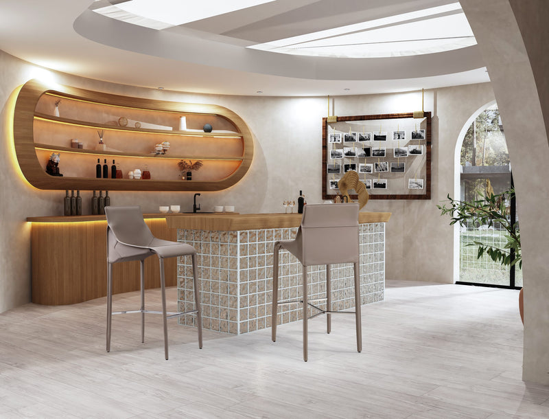 The characteristic light and sophisticated style inspires Emory barstool, expressing the same comfort as the traditional seating system.