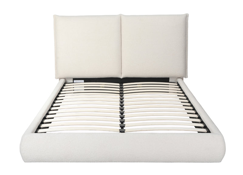 Eric Bed Queen, Fully Upholstered, Beige Fabric, Split Headboard Design.